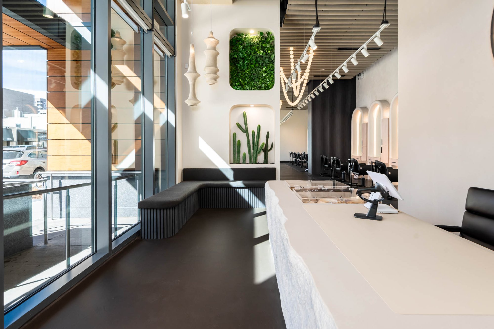 DMCE provided full MEP design services for a new hair salon located in a recently completed 15-story core and shell building at 1140 Bannock Street in the Golden Triangle neighborhood of Denver. The 2,429 SF tenant space required a complete interior MEP buildout including a water-to-air heat pump system, salon-specific exhaust ventilation, plumbing for salon stations, and full electrical power and lighting design. The post-tensioned concrete slab required GPR scanning by others prior to drain penetrations.